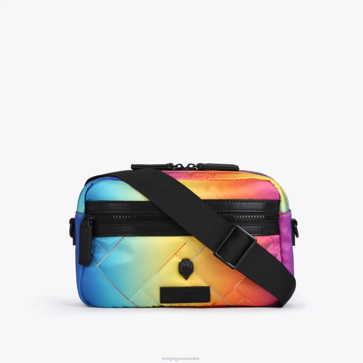 تم تصنيع الجسم المتقاطع المعاد تدويره من مادة النايلون المتدرجة مع درزات زائدة بنمط منسوج. يتميز رأس النسر المعدني الأسود بكريستالات سوداء اللون وعيون خرزية سوداء فوق رقعة مطاطية تحمل العلامة التجارية في المقدمة.